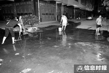 昨晚,附近街坊将街上残留的血迹清洗干净。 本版摄影 信息时报记者 任传富