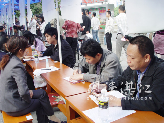 碧海银沙网讯(图/文 邓珠森 编辑/古 韵)12月15日,由赤坎区劳动和社会保障局主办的“赤坎区2007年‘0601’就业工程暨‘中小型企业’现场招聘会”在赤坎区社区服务中心举行。招聘会有85家用人单位为求职者提供了3288个岗位,吸引了8000多名求职者前来竞聘。用人单位和应聘者当场达成意向近1000名,其中有7家用人单位还与310名求职者现场签定了劳动合同书,并办理了劳动签证。副区长翁文海,区政协副主席、区总工会主席梁强华,区劳动和社会保障局局长梁世恒到现场检查指导,并与招聘单位和求职者亲切交谈,了解有关情况。